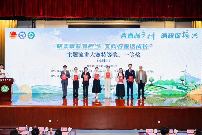 此次比賽以“皖美青春有擔當,實踐歸來話成長”為主題,共有來自46所本科院校和70所高職院校的197名選手參加復賽,最終本科組16名選手進入決賽。我校參賽選手將“三下鄉”實踐經歷和自身專業實際進行結合,以飽滿的熱情、生動的語言和鮮活的事例,闡述了當代新聞學子的責任和擔當,充分展現了青年學子自信自強、奮發有為的精神風貌。比賽結束后,獲獎選手參加了2024年安徽省“百校千鎮萬村”大學生鄉村振興大調研總結分享活動并參與頒獎儀式。