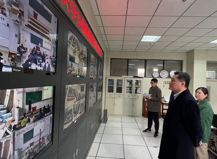 檢查組深入課堂了解教師教學安排和學生學習狀態,詳細檢查多媒體維保中心的運作情況,并實時觀看了全校各班級的授課情況。王曉峰表示,要全力做好教學保障工作,為教學運行創造良好環境;要進一步壓實主體責任,加強課堂教學管理,全面提升教學質量。