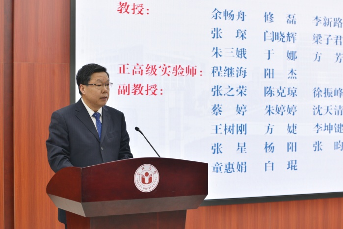 黨委書記王其東代表學(xué)校黨委向新晉升高級職稱教師致以祝賀,對教師們長期以來的辛勤付出、無私奉獻表達感謝。他指出,近年來,學(xué)校大力實施人才強校戰(zhàn)略,持續(xù)加強人才引育,深入推進人事制度改革,師資隊伍整體水平顯著提高。他強調(diào),此次聘任儀式規(guī)格之高,在合肥大學(xué)尚屬首次,這既是對各位的充分尊重認(rèn)可,也是為后續(xù)發(fā)展加油鼓勁。大家要明確職責(zé)使命,堅持更高標(biāo)準(zhǔn)、更嚴(yán)要求,既做“經(jīng)師”也為“人師”,努力在崗位上成為學(xué)術(shù)骨干、團隊核心、擔(dān)當(dāng)標(biāo)桿;要找準(zhǔn)自身定位,堅持特色化、差異化發(fā)展,主動與“國之大者”“校之要事”同頻共振,發(fā)揮不可替代的作用;要拓展合作空間,堅持“走出去”“融進去”,更有意識、有底氣地開展科研學(xué)術(shù)交流、政產(chǎn)學(xué)研用合作。他要求,全校上下,尤其是各職能部門、各二級學(xué)院要拿出“馬上就辦”的態(tài)度和“久久為功”的精神,持續(xù)提高服務(wù)保障水平,積極營造尊師重教氛圍,更好發(fā)揮人才核心競爭力作用,為建設(shè)高水平應(yīng)用研究型大學(xué)共同奮斗。