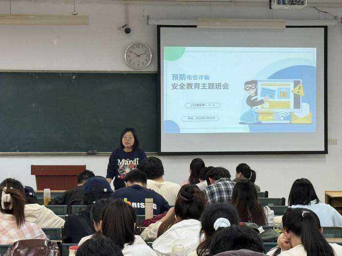 多方協同,構建反詐“共同體”。此次全員班會依托警校聯動機制,整合多方資源。校保衛處、學生處聯合屬地公安持續開展反詐預警和典型案例宣教,營造反詐教育氛圍;學院、輔導員結合學生年級、專業特點定制班會內容,確保教育精準性。活動還通過班級群等平臺推送預警信息,形成線上線下立體化宣傳矩陣。