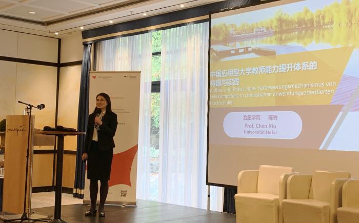 Als Direktor der International Exchange Branch der angewandten Universit?ten der China Education Association for International Exchange des Bildungsministeriums, teilt die Universit?t Hefei aktiv Ressourcen der Bildungskooperation in Europa und leitet andere chinesische angewandte Universit?ten bei der akademischen Forschung und der internationalen Zusammenarbeit an, um die akademische Forschung und den Austausch von international angewandter Hochschulbildung zu f?rdern, das gegenseitige Lernen und die Entwicklung von angewandten Hochschulen in China und Europa voranzutreiben, den Aufbau der neuen angewandten Hochschulen in China umfassend zu beschleunigen. Vom 20. bis 29. Oktober veranstaltete die Universit?t Hefei nach dem Plan des Bildungsministeriums und der China Education Association for International Exchange gemeinsam mit den einschl?gigen Hochschulen und Hochschulallianzen in Deutschland, der Schweiz und Italien ?Das zw?lfte Deutsch-Chinesische Symposium zur angewandten Hochschulbildung“ ?Das vierte Schweizerisch-Chinesische Symposium zur angewandten Hochschulbildung“ und ?Das Italienisch--Chinesische Symposium zur angewandten Hochschulbildung“ drei internationale akademische Symposien durch. Die stellvertretende Generalsekret?rin der China Education Association for International Exchange Frau Dr. Zhou Yan als Delegationsleiterin, Vorsitzender des Application-oriented Universities Committee of China Education Association for International Exchange (CEAIE-AUC) und Professor an der Universit?t Hefei Prof. Dr. Cai Jingmin als akademischer Leiter der Delegation, und 38 Vertreter aus 21 chinesischen Institutionen bildeten die chinesische akademische Delegation für Angewandte Hochschulbildung.