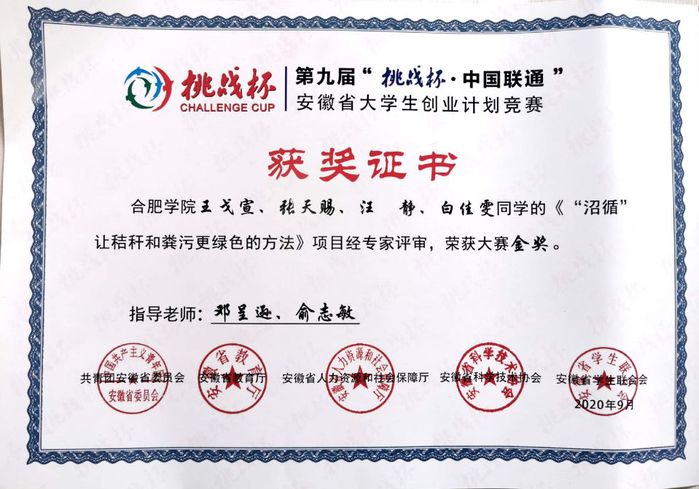 終審決賽中,我校共有三個項目參賽,兩個項目獲大賽金獎,一個項目獲銀獎。其中生物食品與環(huán)境學(xué)院鄧呈遜老師和俞志敏老師指導(dǎo)的作品《“沼循”讓秸稈和糞污更綠色的方法》獲鄉(xiāng)村振興和脫貧攻堅組金獎,雙創(chuàng)中心、生物食品與環(huán)境學(xué)院劉沛平老師、孫虹老師、晉松老師指導(dǎo)的作品《靈魂重鑄——未來新型生物標本領(lǐng)行者》榮獲文化創(chuàng)意和區(qū)域合作組金獎,兩個金獎項目入圍國賽。先進制造與工程學(xué)院胡國華老師和汪圣杰老師指導(dǎo)的作品《“安心踏”——公交車智能踏板系統(tǒng)》獲銀獎。