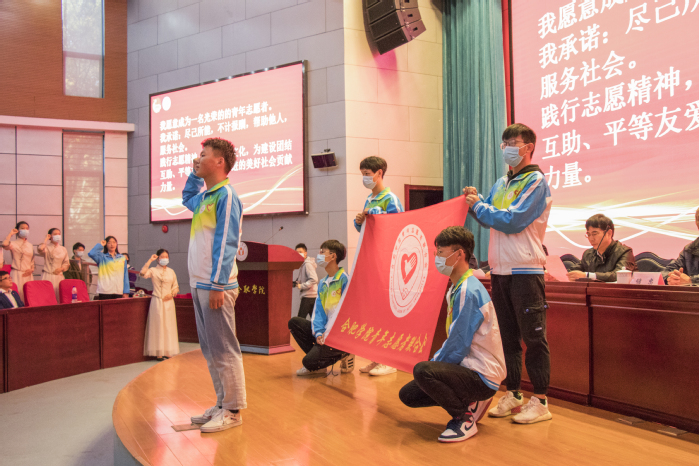 劉玉培宣讀了2020年度青年志愿者工作表彰文件。張應杰宣讀了《關于展開2021年度“筑夢遠航·愛心助學”志愿服務項目的通知》。優秀志愿者代表戴曉慶和優秀指導老師劉政分別作了發言,表達了各自在從事和組織志愿服務方面的心得和感受。