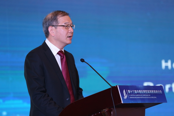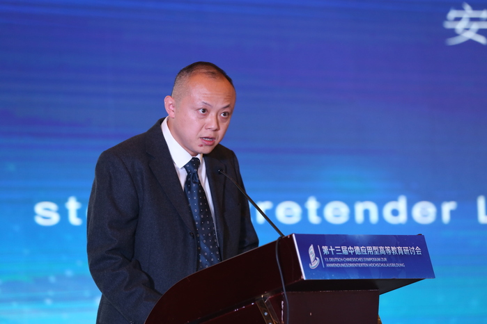 Nach der Er?ffnungszeremonie teilten fünf Experten in der Grundsatzrede des Treffens ihre Gedanken zur anwendungsorientierten Hochschulbildung auf der Grundlage ihrer eigenen Forschungsbereiche mit. Ding Yongjian, Vizepr?sident der Fachhochschule Magdeburg, stellte die ?Perspektiven der chinesisch-deutschen Hochschulzusammenarbeit in der neuen Situation und die Rolle der deutschen Fachhochschulen“ vor. Er sagte, dass die internationalen Beziehungen in hohem Ma?e von der wirtschaftlichen Zusammenarbeit abh?ngen. China und Deutschland haben eine facettenreiche und feldübergreifende Zusammenarbeit im wirtschaftlichen Bereich, die auch eine solide Grundlage für die chinesisch-deutsche Zusammenarbeit im Hochschulbereich bildet. In Zukunft werden die Zusammenarbeit und der Austausch zwischen chinesischen und deutschen Universit?ten fortgesetzt und vertieft, um die Entwicklung und den Fortschritt der chinesischen und deutschen Bildung sowie die Win-Win-Zusammenarbeit gemeinsam zu f?rdern.