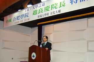 我院與韓方5所院校分別就相關專業落實“1.5+1.5”合作辦學項目、開展“2+2”合作辦學項目、開設韓語專業和韓語培訓,并就建立友好學校關系、開展合作交流等問題進行了會談,與合作學校簽訂了相關協議。趙院長還邀請韓方高校參加今年10月在我院召開的“新農村建設”國際研討會。此外,趙良慶院長還應韓瑞大學校長咸基善博士的邀請,為韓瑞大學的學生作了題為“大學之道”的精彩演講,受到師生的熱烈歡迎。