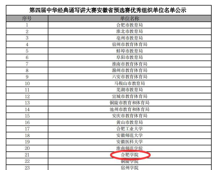 為落實全國語言文字會議精神,全面深入實施中華經典誦讀工程,教育部、國家語言文字工作委員會組織開展了第四屆中華經典誦寫講大賽,安徽省舉辦了預選賽,我校師生積極參賽,多項作品在安徽省預選賽中獲獎,我校榮獲優秀組織獎。