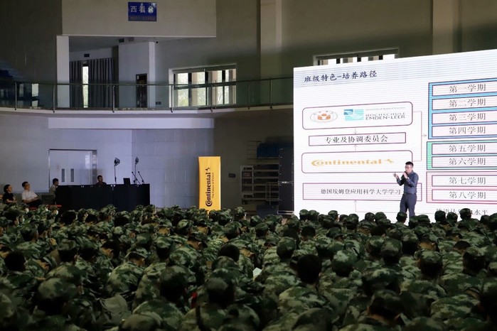 接著,劉喬松代表大陸集團上場介紹了大陸集團的公司理念、企業實力,以及大陸班的人才培養方案和畢業學生工作安排。