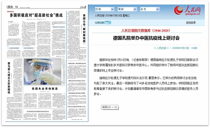 此次疫情同時在歐洲多國肆虐,目前德國醫(yī)療系統(tǒng)承受著巨大的壓力,在進(jìn)一步相對有效控制住本國疫情的同時,還接收了大量來自法國、意大利等鄰國的重癥患者。中醫(yī)藥及中西醫(yī)結(jié)合診療在中國的成功經(jīng)驗,也獲得了德國醫(yī)療專業(yè)人士的廣泛關(guān)注。借此契機(jī),合肥學(xué)院在德國施特拉爾松德共建的施特拉爾松德孔子學(xué)院聯(lián)合德國漢堡大學(xué)附屬埃彭多夫醫(yī)院漢薩美安中醫(yī)中心,共同組織舉辦了數(shù)場中醫(yī)抗擊新冠疫情的線上專業(yè)研討會。按照計劃,從4月下旬至6月上旬間共計舉辦5場免費研討會,內(nèi)容主要包括中醫(yī)藥在此次新冠疫情預(yù)防、治療和康復(fù)中發(fā)揮的作用,以及中國國內(nèi)一些地區(qū)成功的臨床經(jīng)驗分享。施特拉爾松德孔子學(xué)院中方院長孫建安表示,希望通過舉辦研討交流活動,讓德國醫(yī)療界同行更加了解中醫(yī)藥獨特的理論和診療方法,以及在應(yīng)對這次新冠疫情實踐中展示出的有效性。施特拉爾松德孔子學(xué)院德方院長法爾克·霍恩教授表示,已舉辦的兩場研討會在當(dāng)?shù)匾鹆撕艽箨P(guān)注,最近一場就吸引了40多名當(dāng)?shù)蒯t(yī)護(hù)人員線上參加。學(xué)院目前正在積極籌備接下來的研討會,計劃邀請曾在中國親身參與過抗擊新冠疫情的醫(yī)務(wù)人員參會。