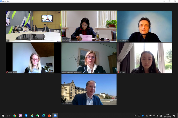 吳春梅首先對三方成功召開線上視頻會議表示祝賀,她指出中德對話論壇是中德兩國政府共同構建的交流平臺,今天的視頻會議是落實中德對話論壇的共識,三方擬共同建設中德開放在線學習平臺,實現中德學位互授聯授、高校教師培訓、雙元制線上線下融合培訓。作為中德開放在線學習平臺的主建設方,袁雯向大家介紹了上海開放大學的辦學歷史與培養目標,她強調中德開放在線學習平臺是一個開放的平臺,希望有更多的國家、學校、學者加入,本次三方協議的建立正是一次良機。Andreas Bertram表示很高興能夠和我校再次合作,同時,他對針對備忘錄中四個方面的內容提出建設性意見,他認為德方在雙元制教學方面已有豐富的經驗,可以將數字化概念與線上線下平臺進行整合,未來希望三方可以在線上平臺錄制視頻等方面共同制定標準,以保證教學質量。
