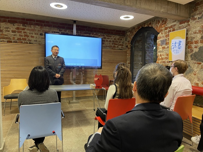 2021年10月16日,第14屆中學(xué)生“漢語(yǔ)橋”德國(guó)賽區(qū)總決賽頒獎(jiǎng)典禮在施特拉爾松德市立圖書(shū)館成功舉行。施特拉爾松德孔子學(xué)院德方院長(zhǎng)法爾克·霍恩教授主持活動(dòng)并介紹獲獎(jiǎng)選手代表及與會(huì)嘉賓。