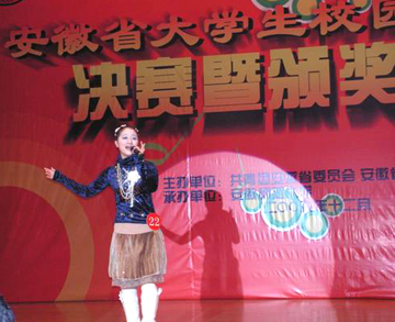 我院團委認真貫徹團省委下發(fā)的文件精神,于11月24、25日在校南區(qū)禮堂分別舉辦了校園歌手預(yù)決賽,前后共五百多人參加此次活動,吳墨君同學(xué)從中脫穎而出,經(jīng)老師指導(dǎo)和自身的努力,最終在安徽省31所高校的激烈角逐中榮獲業(yè)余組銀獎。
