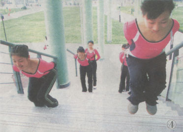 綁著紗袋跳樓梯