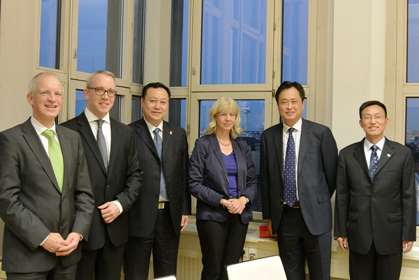代表團一行在德國期間還拜訪了中國駐德國使館教育處,駐德教育處公使銜參贊董琦教授聽取蔡敬民對我校國際合作和應用型改革情況,以及針對中德教育合作示范基地與基金的建設方案的匯報。在德期間,蔡敬民還專程訪問了漢諾威應用科學大學,拜訪下薩克森州科學文化部。
