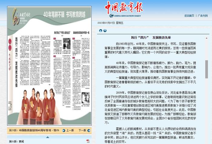 中國教育報 踐行“四力” 發掘教改先鋒 2023年7月7日