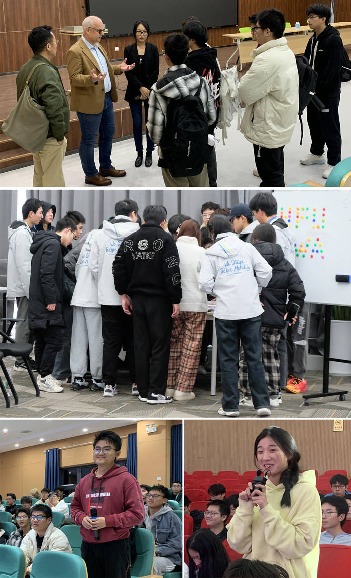 2023-2024學年第一學期,大眾學院聯合大眾安徽舉辦了5次企業客座教授理論授課與認知實習活動。學校客座教授、大眾安徽首席執行官葛皖鏑博士、首席財務官哈約根博士、首席技術官呂爾曼博士、首席數字官高樂夫先生和首席制造官施耐德先生,為學生進行精彩授課。