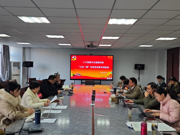 為提升黨務(wù)工作效能,鞏固黨建根基,強化黨員隊伍素質(zhì),按照校黨委組織部的部署安排,人工智能與大數(shù)據(jù)學院于12月24日上午舉辦了“三會一課”及黨員發(fā)展工作業(yè)務(wù)知識專題培訓(xùn)會。學院黨委委員、各黨支部書記、支委成員及部分黨員代表參加了此次培訓(xùn)會,會議由學院黨委書記牛欣主持。