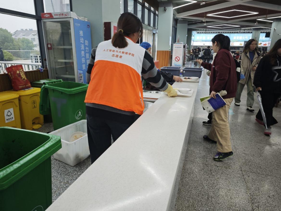 活動中,志愿者們來到食堂,明確分工后迅速投入工作。部分志愿者負責清理餐桌上的殘留食物和垃圾,確保桌面干凈整潔;部分志愿者幫食堂阿姨將餐盤中的剩余食物倒入垃圾桶中,減輕食堂工作人員的工作負擔;另一部分志愿者拿起掃帚,仔細清掃地面的殘渣和雜物,維護食堂整體衛生。