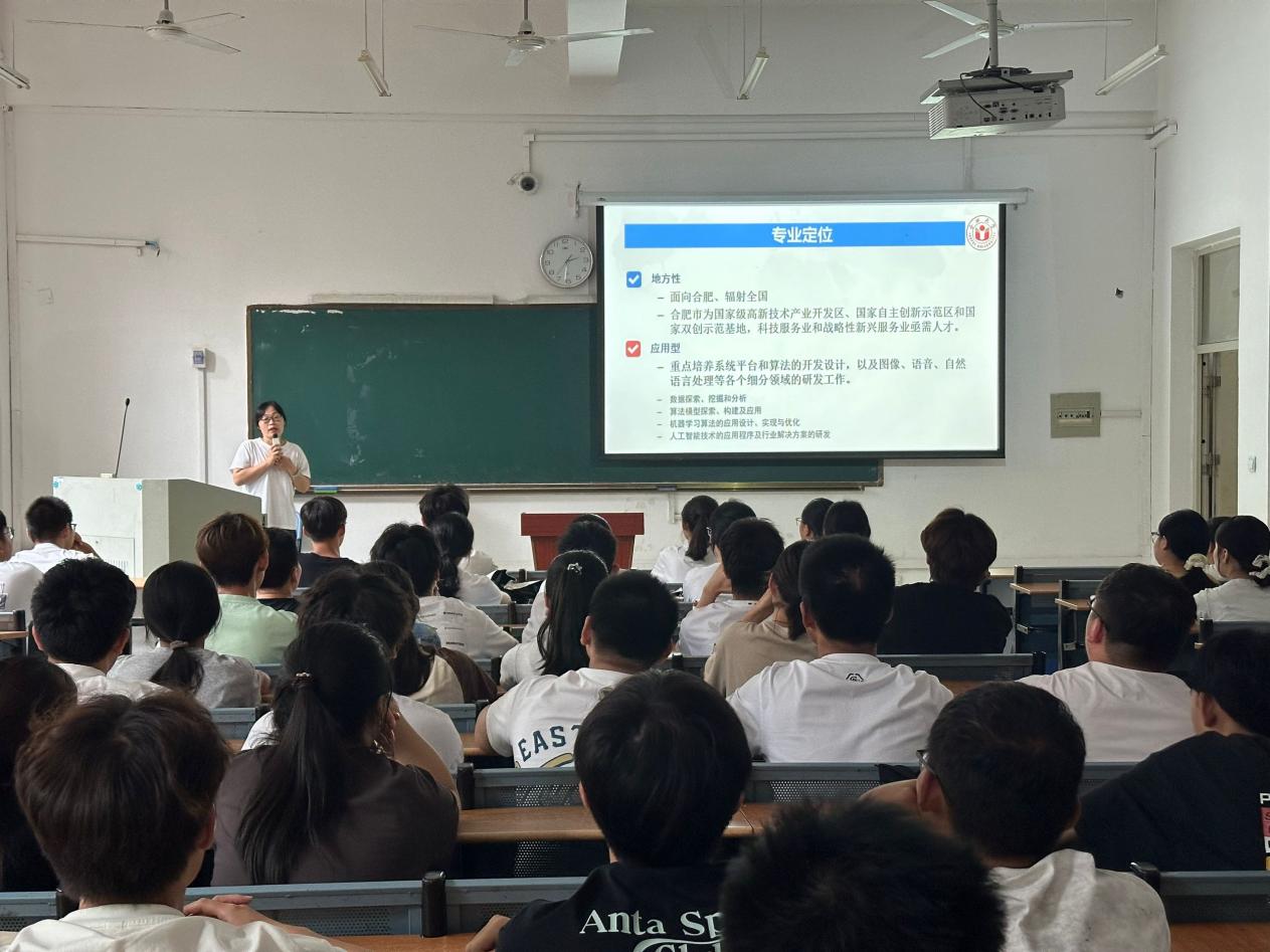 9月11日下午,智能科學與工程系系主任何立新老師為2025級計算機科學與技術專業新生介紹本院簡介、專業概括及就業情況等信息,幫助新生建立專業認知框架。