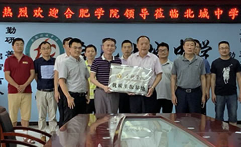 合肥北城中學(xué)是由長豐縣人民政府投資興建,合肥一中全面托管的公辦寄宿制高中。學(xué)校既有縣委縣政府的大力支持,又有與合肥一中在教育教學(xué)等各方面的等高對(duì)接。基礎(chǔ)設(shè)施高端一流,管理模式扁平高效,教師隊(duì)伍年輕活力,特色課程育人有“度”,校園文化獨(dú)具魅力。授牌儀式上,王東錄首先代表合肥北城中學(xué)致歡迎詞,并對(duì)合肥北城中學(xué)的基本概況進(jìn)行了介紹。他強(qiáng)調(diào)合肥北城中學(xué)致力于打造學(xué)習(xí)型、學(xué)術(shù)型學(xué)校,希望兩校以建設(shè)“優(yōu)質(zhì)生源基地”為契機(jī),進(jìn)一步促進(jìn)了大學(xué)教育與中學(xué)教育的良性互動(dòng),加快培養(yǎng)更多創(chuàng)新型人才。