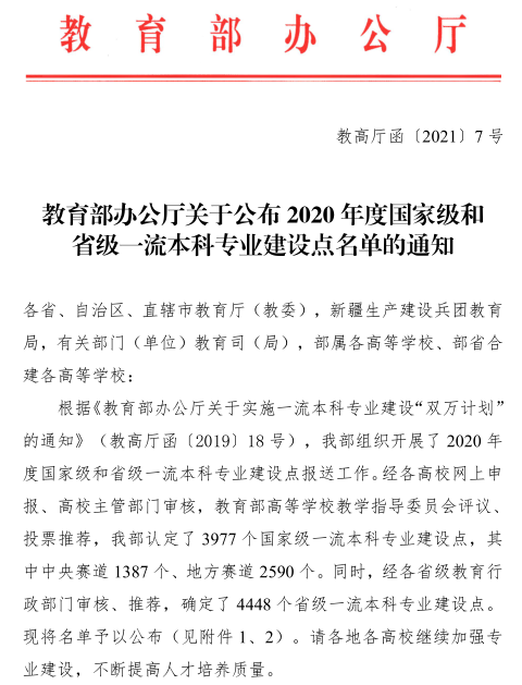 2021年2月22日,人大學院收獲一份特大喜訊。在副校長陳秀教授的帶領下,在校、院兩級多部門領導的支持下,在全體專業師生的共同努力下,經過多方調研、交流和申請書的不斷打磨,數學與應用數學專業成功獲批2020年度國家級本科一流專業建設點。本次國家級本科一流專業的申請,競爭異常激烈,能夠最終獲批,進一步體現了本專業辦學理念的先進、成果的豐碩。我們也將借著國際級一流本科建設點建設的契機,秉承OBE的理念,專業認證理念,持續推進專業建設,高質量完成國家級一流本科專業的建設。
