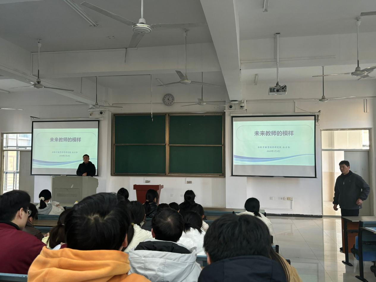 1月5日下午,我校榮幸邀請到了合肥市教育科學研究院教研員沐方華老師來我校進行了題為《未來教師的模樣》的教育專題講座。講座從下午3點50至5點在37棟三樓階梯教室展開,由余海峰院長、姚玉武主任和胡秀林老師以及全體20級、21級數學與應用數學專業學生參加。