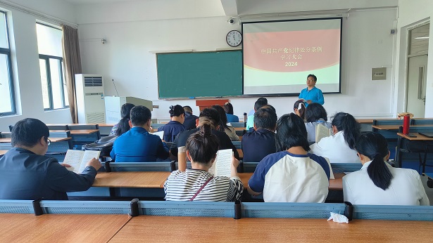 何立新書記首先介紹了《中國共產黨紀律處分條例》的主要內容和重要意義,強調了紀律教育在高校教育中的核心地位。隨后,教師們共同學習了條例的各個章節,特別是對違反政治紀律、組織紀律、廉潔紀律、群眾紀律、工作紀律和生活紀律的具體處分規定進行了深入討論。