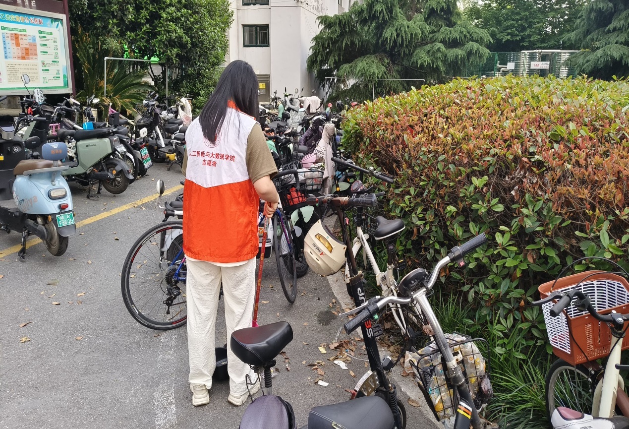 在桂苑和蘭苑這兩個宿舍區,志愿者們用掃帚等工具清理地面上的樹葉、紙張等垃圾,并整理未擺放整齊的車輛。即使是下雨天,雨后志愿者們也會帶上手套清理難以除去的垃圾。他們認真負責,完美詮釋了勞動精神,是校園里一道獨特靚麗的風景線。