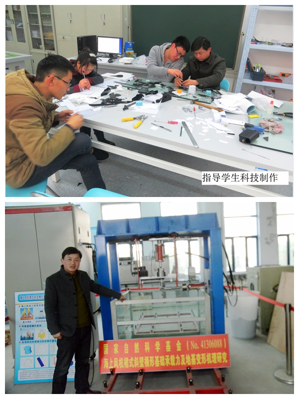 對(duì)于采訪,劉金龍顯得有些拘謹(jǐn),然而當(dāng)聊到有關(guān)科研工作時(shí),他立刻打開(kāi)了話匣子,向我們介紹了他最新的科研項(xiàng)目:海上風(fēng)機(jī)分段斜壁桶形基礎(chǔ)的承載力研究。風(fēng)力發(fā)電是近年來(lái)我國(guó)海洋事業(yè)發(fā)展的一項(xiàng)重點(diǎn),然而風(fēng)機(jī)對(duì)基礎(chǔ)的穩(wěn)定性要求很高,工程界一直在尋求提高風(fēng)機(jī)基礎(chǔ)承載力特別是水平承載力的措施。針對(duì)傳統(tǒng)海上風(fēng)機(jī)桶形基礎(chǔ),劉金龍?zhí)岢隽硕喾N改進(jìn)方案,“其實(shí),算不上發(fā)明,只能算是在現(xiàn)有技術(shù)上的創(chuàng)新吧,我考慮到傳統(tǒng)桶形基礎(chǔ)的側(cè)壁主要為豎直面,可不可以將它改為斜面呢?并且還可以分段采用不同的傾角,即上半部分與下半部分采用不同的斜面,這樣可變換出一系列的新構(gòu)型。”劉金龍十分興奮地描述著自己的想法,果然很快基于理論分析的多種改造方案出爐,相關(guān)成果已發(fā)表并被EI收錄。