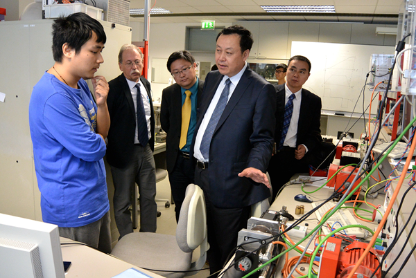 9月4日,代表團一行于奧地利訪問了里奧本礦業大學,并與該校校長艾謝爾賽德教授舉行了會談。艾謝爾賽德校長在介紹中指出,里奧本礦業大學成立歷史悠久,在奧地利工科院校中排名第一,期望與合肥學院在工程人才領域的教師及高層次人才培養方面開展合作。蔡敬民感謝校長的盛情接待,并重點就中國應用型工程人才培養的情況及我校基地建設進行了介紹,期望里奧本礦業大學通過雙方合作,在基地人才隊伍建設和科研項目方面發揮作用。雙方在會談后簽署了兩校框架性合作協議。在該校廢棄物利用及管理研究所主任博姆貝格教授,以及該研究所前任主任、我校“歐盟亞洲鏈”項目奧方負責人勞勃教授的引導下,代表團一行參觀了該校環境領域實驗室,并就后期具體領域內的合作事宜進行了探討。