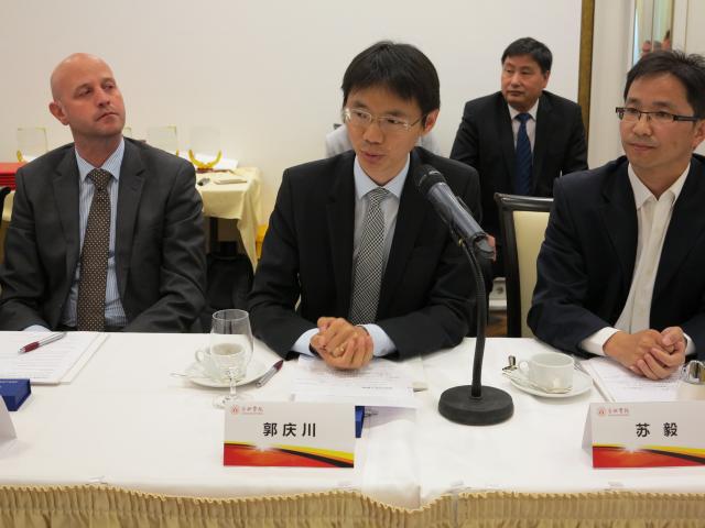 合肥學(xué)院黨委書記蔡敬民首先致辭。他向李錦斌書記一直高度重視中德教育合作示范基地建設(shè)以及人才工作表示感謝!向長(zhǎng)期以來,一直支持學(xué)校建設(shè)與發(fā)展的德國(guó)教育界和企業(yè)界的專家、教授表示感謝!并對(duì)正在加速推進(jìn)中德教育合作示范基地建設(shè)的相關(guān)工作進(jìn)行了簡(jiǎn)要介紹。