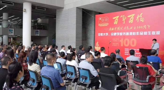 本次展覽以習近平新時代中國特色社會主義思想為指導,作品出自我校和安徽大學師生及安徽省書畫攝影協會,本次活動是兩校慶祝黨的百年華誕的一項重要活動,更是面向全校師生的一項文化藝術教育活動。展覽從大學的視角,圍繞慶祝建黨100周年主題,講好中國共產黨的奮斗故事,抒發對中國共產黨的深情禮贊,展出的作品筆力遒勁、技藝精湛、飽蘸深情,用筆墨歌頌成就、用丹青傳達情意,謳歌黨的豐功偉績,表達了師生熱愛黨、忠于黨的真摯情感和聽黨話、跟黨走的堅定信心。