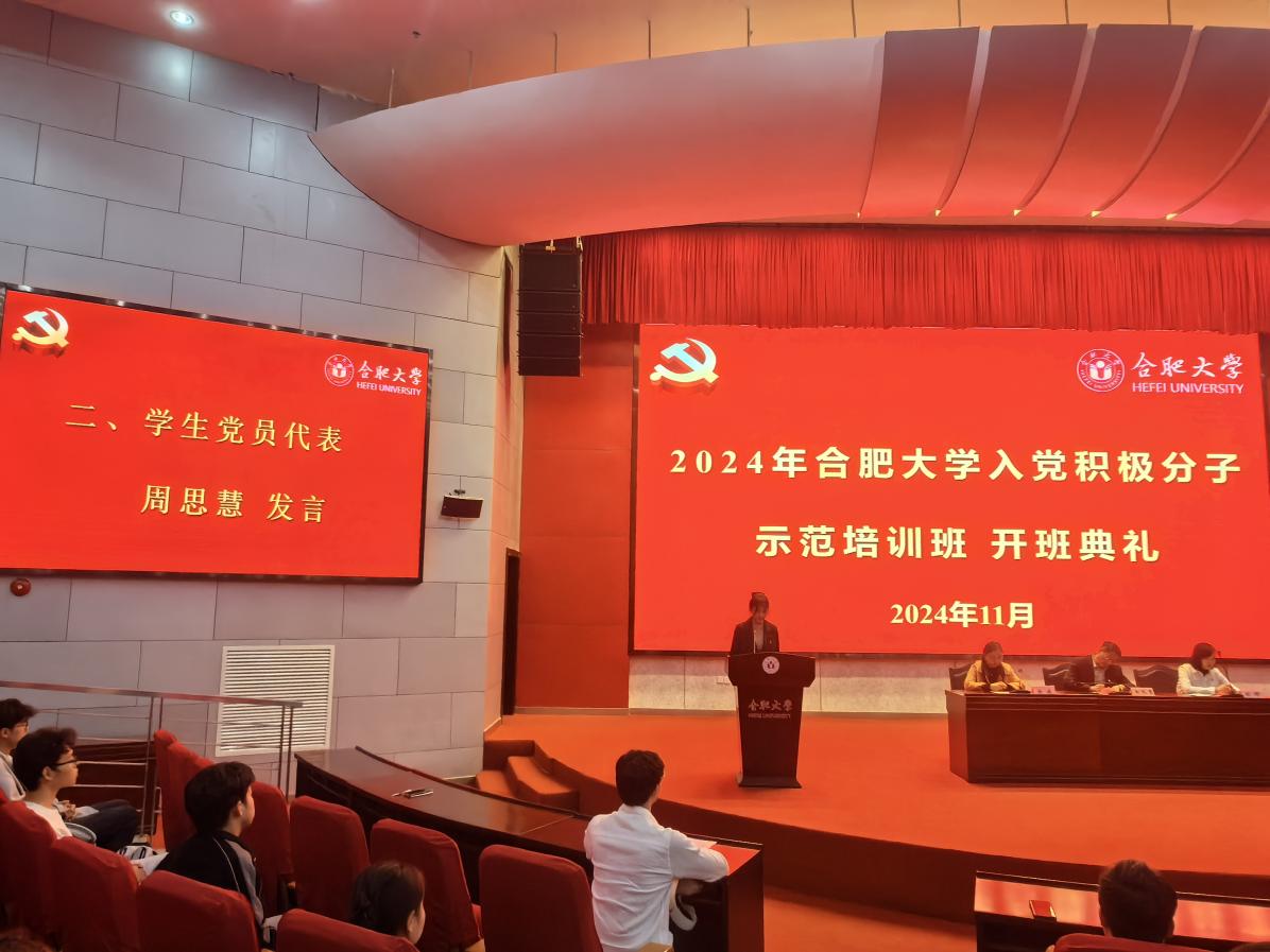 為深入學習宣傳貫徹黨的二十屆三中全會精神和習近平總書記考察安徽重要講話精神,示范帶動院級黨組織抓實入黨積極分子培養教育,11月5日中午,合肥大學在圖書館報告廳A廳舉辦2024年合肥大學入黨積極分子示范培訓班開班典禮。校黨委委員、副校長白義香,先進制造工程學院黨委書記杜娟,校黨委組織部組織科科長姚娜,先進制造工程學院輔導員威力旺,以及我校77名入黨積極分子參加此次開班典禮。開班典禮由杜娟主持。