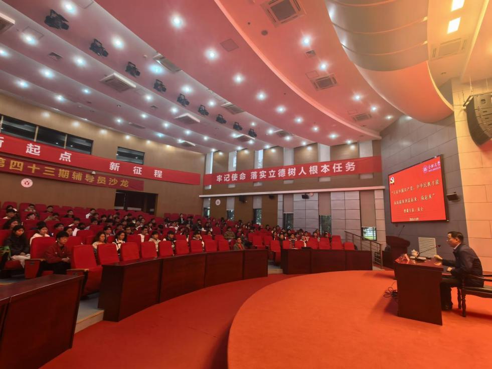 張侖以回顧歷史為切入點,分三個階段生動詮釋了在波瀾壯闊的百年歷史進程中,中國共產黨緊緊團結和依靠人民,取得了中國革命、建設、改革的偉大勝利。他強調,新中國75年的歷史,是中國共產黨領導中國人民為實現中華民族偉大復興取得豐功偉績的歷史。我們要認真總結新中國75年來的歷史經驗,從中汲取營養,珍惜和守護自己的精神家園。授課最后,張侖引用毛澤東同志“你們青年人朝氣蓬勃,正在興旺時期,好像早晨八九點鐘的太陽,希望寄托在你們身上”勉勵大家積極加強理論學習,努力提高自身本領,以銳意進取、無私奉獻的實際行動,擔起時代賦予的使命。