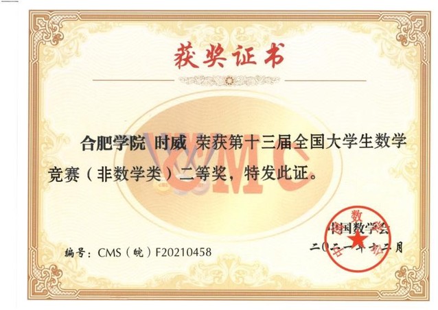 初入大學,時威勤學苦練,刻苦鉆研專業知識,剛開學時他就樹立了明確的學習目標,書中自有黃金屋,他不僅努力學習書本知識,還積極參加各種比賽活動。第二年,他獲得全國大學生英語競賽三等獎。