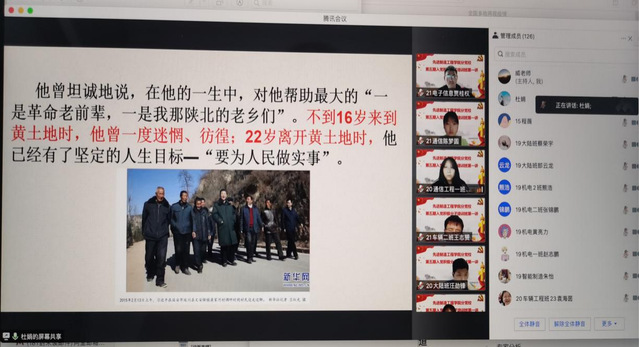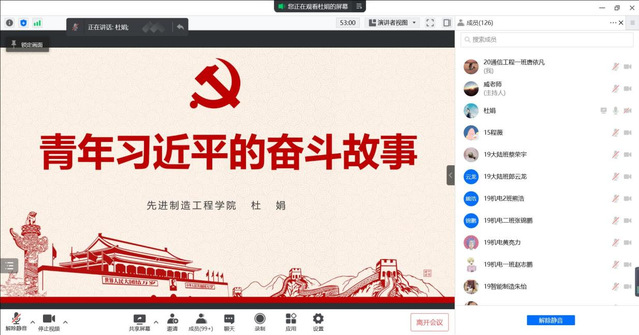 2022425日中午12:30,先進制造工程學院分黨校第五期入黨積極分子通過騰訊會議平臺開展了第一次黨課教學。本次黨課由院黨委書記杜娟進行授課、機制學生黨支部書記威力旺老師主持,先進制造工程學院分黨校第五期入黨積極分子124學員參加了本次課程。本次授課主題為“青年習近平的奮斗故事”。