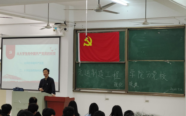 2022511日中午12:40,先進制造工程學院分黨校第五期入黨積極分子培訓班在383JT開展了第五次黨課教學,這也是本次黨校在本學期的第一次線下黨課教學。本次黨課由校紀委宋海峰書記進行授課、院黨委杜娟書記主持,先進制造工程學院分黨校第五期共124名入黨積極分子參加了本次課程,黨課主題是從大學生向中國共產黨員的轉變