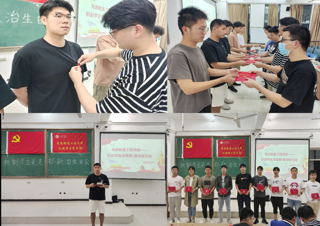 為了表達對新血液、新力量的加入歡迎,機制學生黨支部的正式黨員們親自給21同志佩戴黨員黨徽并發放政治生日賀卡,帶領新黨員進行莊嚴的入黨宣誓,21位同志備受鼓舞,他們表示在以后的工作中和生活中一定嚴于律己,用高標準規范自己的言行,發揮好模范帶頭作用。在新黨員鏗鏘有力的入黨誓詞中,支部大會圓滿落幕。