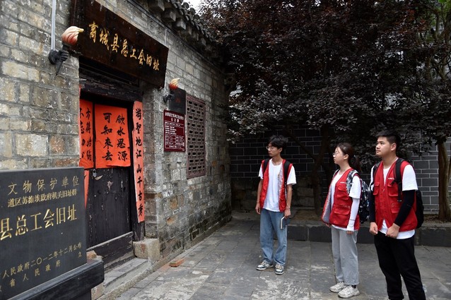 (圖為調研團隊成員參觀湯家匯革命舊址)