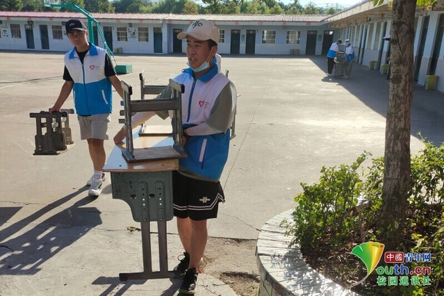 調研成員與當地志愿者在社區附近進行救生物品投放工作。 中國青年網通訊員 溫司君 攝