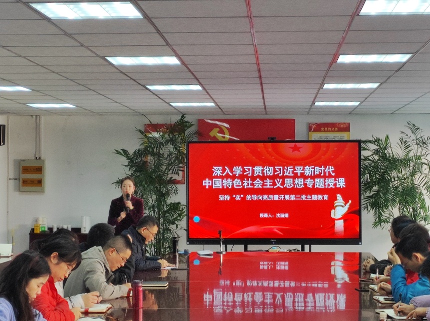 沈書記就“深入學習貫徹習近平新時代中國特色社會主義思想-堅持“實”的導向高質量開展第二批主題教育”為主題進行授課。沈書記深入淺出的講解了“習近平新時代中國特色社會主義思想的精神實質”,以及“以中國式現代化全面推進中華民族偉大復興”的內涵。通過沈書記生動的講解以及黨員教師的認真學習,黨員教師進一步領會主題教育的實質,明確了學習目標,進一步強化了理想信念。通過此次學習,黨員教師更加堅定了教育強國的理念,牢固樹立以學生為中心的理念,深入貫徹落實人才強國戰略,培養社會主義發展所需專業人才,致力于中華民族的偉大復興。