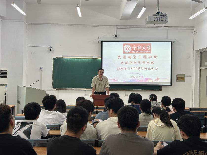 5月28日,自動化學生黨支部2024年上半年黨員轉正大會在36棟108教室舉行,教師黨員張傲、支部學生黨員和群眾代表參會。學生兼職副書記王旖薇同志主持會議。