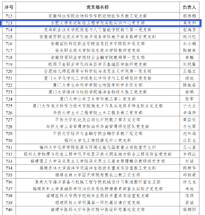 根據《教育部辦公廳關于開展高校“雙帶頭人”教師黨支部書記“強國行”專項行動的通知》要求,經各高校黨委審核把關、省級黨委教育工作部門擇優推薦、專項行動辦公室備案審核,遴選產生全國高校“雙帶頭人”教師黨支部書記“強國行”專項行動團隊名單,實驗實訓中心黨支部成功入選該專項行動團隊。
