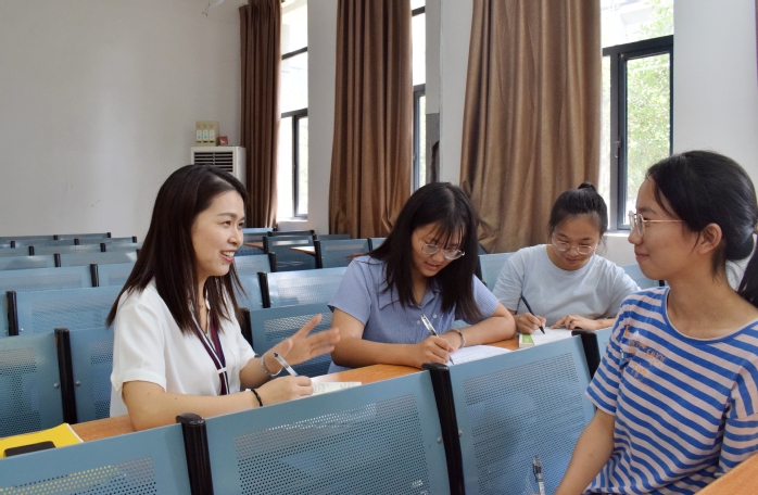 呂琴琴(左一)在和學生交流