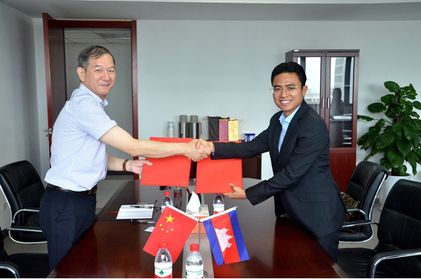 On July 3rd, Ouk Socheth,Lord of Kingdom of Cambodia and Chairman of Kampuchean-Hefei Association visits Hefei University. Professor Wang Qidong, president of HFU meets with Ouk Socheth to sign a cooperation agreement.