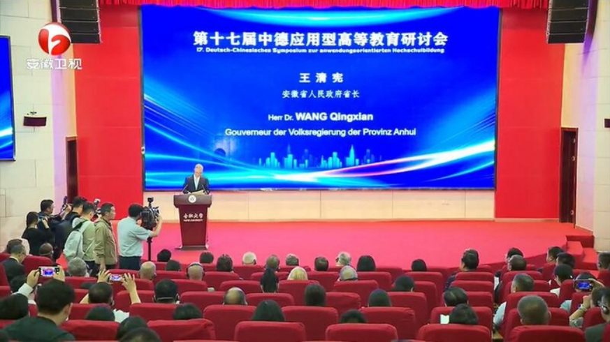 王清憲在致辭中表示,今年是安徽省與下薩克森州結(jié)好40周年,多年來安徽主動(dòng)融入中德合作大局,在制造業(yè)、高等教育等領(lǐng)域取得了豐碩合作成果。雙方以合肥大學(xué)為依托,借鑒德國“雙元制”經(jīng)驗(yàn),探索專業(yè)、就業(yè)、產(chǎn)業(yè)相融合的應(yīng)用型人才培養(yǎng)模式,為中德雙方企業(yè)輸送了大量高素質(zhì)應(yīng)用型人才,成為中德應(yīng)用型高等教育合作的典范。希望中德雙方應(yīng)用型高校加強(qiáng)對接,在學(xué)術(shù)研討、科技研發(fā)、人才培養(yǎng)等更多領(lǐng)域,建立交流合作機(jī)制,探索企業(yè)出題、中德高校合作破題的產(chǎn)教融合機(jī)制,構(gòu)建更多“嵌入式”產(chǎn)學(xué)研合作平臺(tái),培養(yǎng)更多高素質(zhì)、應(yīng)用型創(chuàng)新人才。