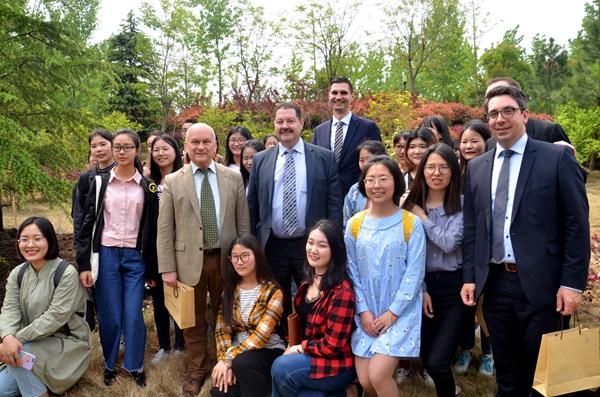 Zuerst wurde der Delegation Filmmaterial, mit einer allgemeinen Vorstellung der Universit?t und vom Besuch der Bundeskanzlerin Merkel und dem Premierminister Li Keqiang, gezeigt. W?hrend der Besichtigung gab Prof. Dr. Cai Jingmin einen überblick über die Universit?t. Der Schwerpunkt war die Entwicklung der Universit?t, die internationalen Bildungskooperationen, der Austausch der Studenten und Lehrkr?fte, der kulturelle Austausch und die wissenschaftliche Zusammenarbeit.