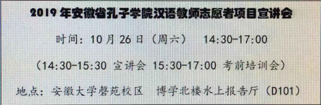 為推進(jìn)安徽省各高校孔子學(xué)院工作,宣傳漢語教師志愿者項目,方便廣大學(xué)生進(jìn)一步了解漢語教師志愿者的崗位要求和工作職責(zé),鼓勵更多的學(xué)生參與到漢語國際推廣事業(yè),孔子學(xué)院總部、安徽省教育廳、安徽省孔子學(xué)院師資培訓(xùn)基地和安徽大學(xué)將共同舉辦安徽省孔子學(xué)院漢語教師志愿者項目宣講會
