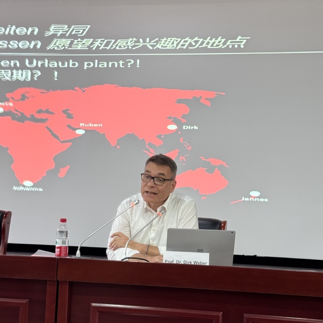 6月3日,德國慕尼黑應(yīng)用科學(xué)大學(xué)德克·韋伯(Drik A Weber)教授在一期學(xué)術(shù)報告廳為中德合作辦學(xué)專業(yè)的師生們做題為“國際談判的藝術(shù)—視角轉(zhuǎn)換”的學(xué)術(shù)報告。報告會由經(jīng)濟與管理學(xué)院吳悅副院長主持,國際交流合作處副處長孔春華、經(jīng)濟與管理學(xué)院、人工智能與大數(shù)據(jù)學(xué)院近百名師生參加報告會。