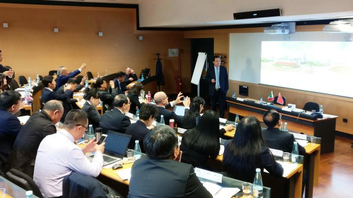 在接下來的大會主旨報告中,意大利高等教育評估專家、米蘭理工大學機構與公共事務管理系主任維奇教授為大家介紹了意大利高等教育體系及其在應用型方向的發展特色,尤其是高校支撐企業創新發展方面的模式。機械工程系主任波奇隆尼教授在報告中則更為深入地介紹了意大利高校開展應用型科研及校企合作的模式。他從高校管理模式入手,介紹了各學院、系部及研究院所對科研項目的決策自主性;從歐盟和意大利存在的政府與企業項目資助差距,明確了高校教師和研究人員團隊以創新帶動企業發展的必然性。中國教育國際交流協會應用型高校國際交流分會理事長、合肥學院蔡敬民教授在報告中為意大利同仁解析了中國發展應用型高等教育的合理性和必要性。他以國家政策、發展歷程、內涵建設及經驗案例等方面,向意大利學者第一次呈現了中國應用型高校改革發展的完整脈絡。