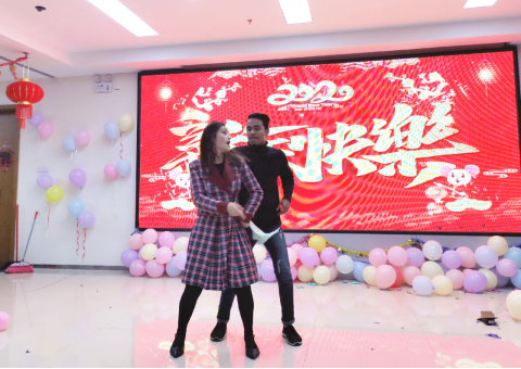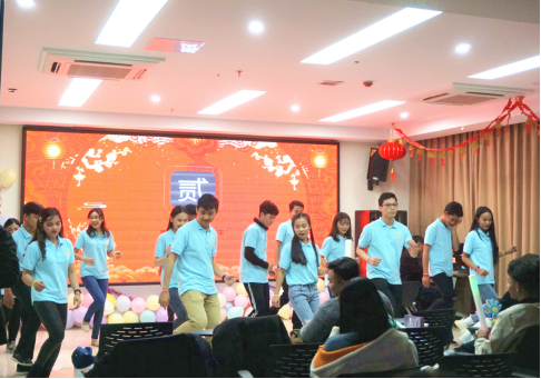 晚會(huì)還未開(kāi)始,觀眾們的歡聲笑語(yǔ)已經(jīng)回蕩在多功能廳里了。他們的笑容和笑聲無(wú)一不透露著他們對(duì)于這次元旦晚會(huì)的期待。晚會(huì)正式開(kāi)始,首先進(jìn)行的是由中國(guó)學(xué)生王方彤及其同伴帶來(lái)的暖場(chǎng)舞蹈。她們的舞蹈融入了她們的熱情,將整個(gè)現(xiàn)場(chǎng)的氣氛都調(diào)動(dòng)了。接著,挑戰(zhàn)速度和反應(yīng)能力的動(dòng)物大連蹲游戲開(kāi)始了,各國(guó)的留學(xué)生都積極踴躍地參與到游戲當(dāng)中,搞笑的動(dòng)作讓觀眾們爆笑連連。